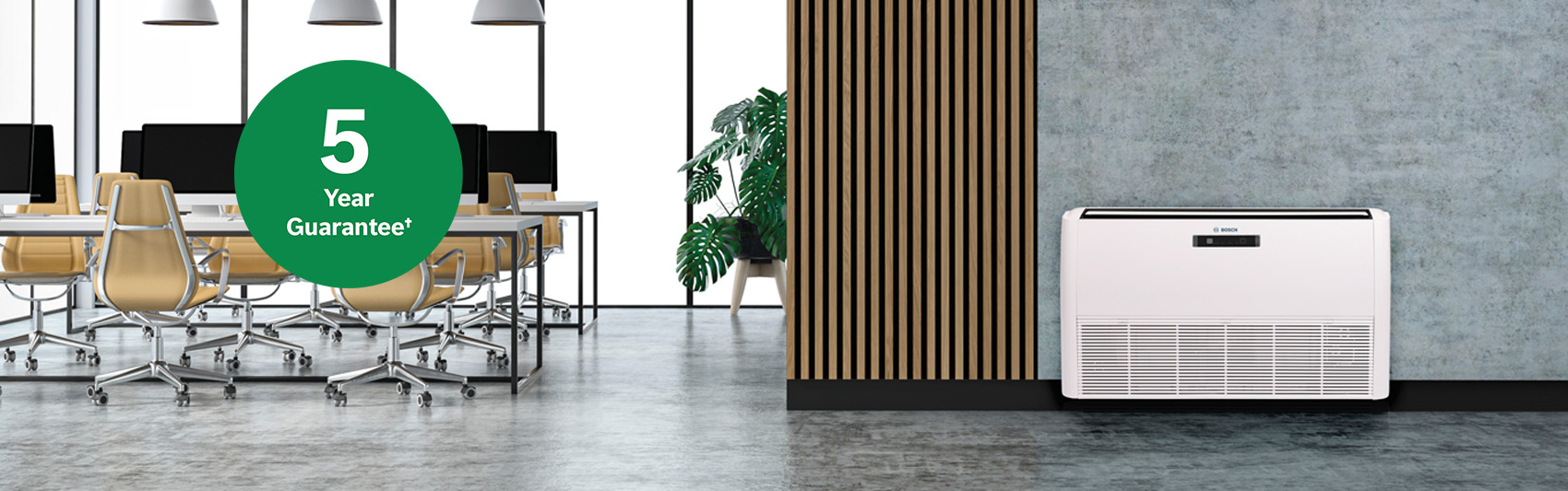 Our Bosch Climate 5000 Large Split Ceiling/Floor range delivers heating and cooling for small properties such as offices and retail shops – providing comfort throughout the year. Also compatible with our HomeCom Easy App to enable smart connectivity.